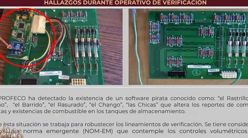 El titular de la Procuraduría Federal del Consumidor (Profeco), Ricardo Sheffield, informó que derivado de una verificación en una gasolinera de Campeche, encontraron un software pirata conocido como El Rastrillo, el cual altera reportes de compra, venta y existencia de combustible.