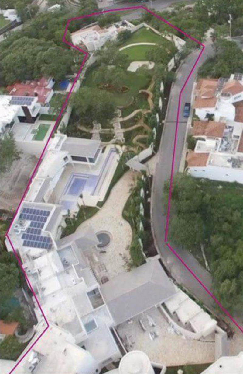 La casa tiene 7000 mts de terreno y 1,900 mts de construcción, cuenta con vista panorámica hacia el mar y ocupa todo el frente de una manzana del fraccionamiento.