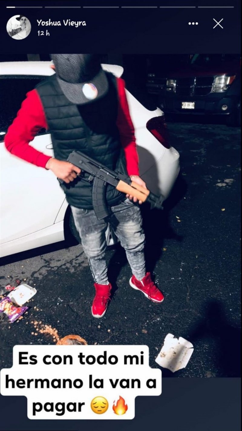 “Es con todo mi hermano, la van a pagar”, está escrito en una fotografía del joven que porta un arma larga.