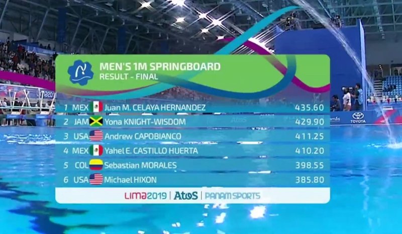 La presea de plata fue para el jamaicano Yona Jam (429.90) y el tercer lugar en el podio fue para el estadounidense Andrew Capobianco (411.25).