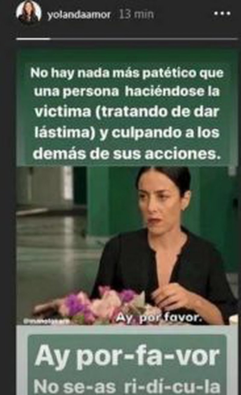 Fue en su InstaStories donde Yolanda Andrade afirmó que “no hay nada más patético que una persona haciéndose la víctima (tratando de dar lástima), y culpando a los demás de sus acciones”.