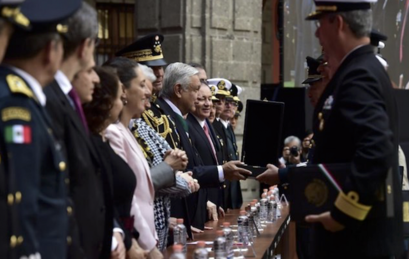 Asimismo, el funcionario precisó que a lo largo del nuevo Gobierno federal se les han encomendado nuevas tareas, de las cuales, afirmó, el Presidente puede tener la seguridad “de que los soldados y marinos nos sentimos orgullosos y honrados que así sea, y las hacemos porque sabemos que esos esfuerzos están encaminados a la gran transformación de México que usted dirige”.