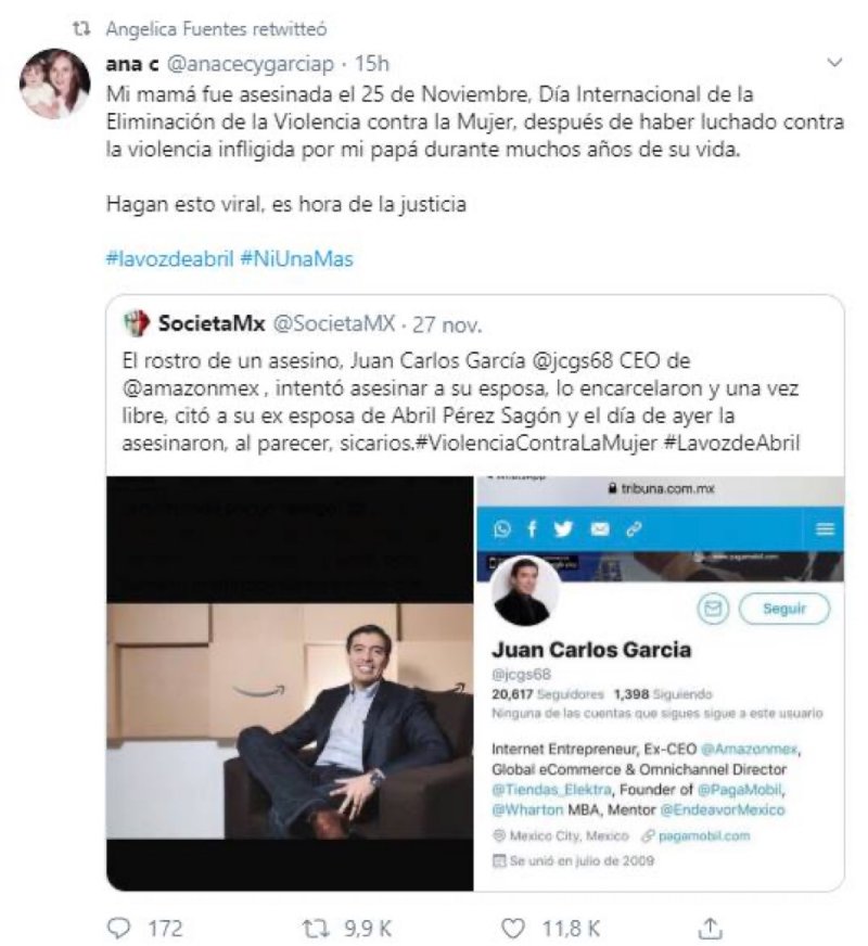 El padre de Ana Cecilia, Juan Carlos García, quien fue el primer CEO de Amazon en México, es el principal sospechoso del crimen.