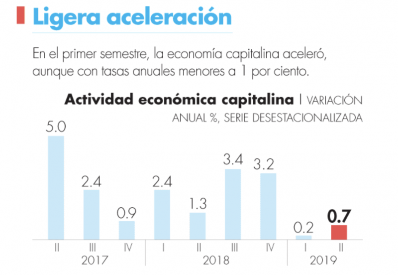 En este sentido, en el primer semestre, la economía de la ciudad se aceleró, aunque con tasas anuales menores a 1 por ciento. Al respecto, Aguirre Marín indicó que este comportamiento se debe a “decisiones dentro del propio Gobierno de la Ciudad de México que no han sido de las más acertadas”.
