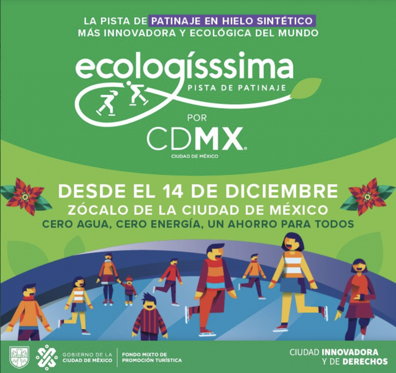 La pista de hielo natural que se usaba en el pasado requería para su funcionamiento 398 mil litros de agua, 330 mil kilowatts de energía eléctrica y 307 mil litros de gasolina o diésel. Estos elementos ya no se necesitan con la nueva pista de patinaje. El material innovador no consume agua, combustibles o electricidad lo que convierte la zona en una pista de patinaje ecológica que ayuda a la Ciudad de México a cuidar sus recursos naturales y no renovables.