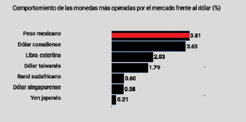 El peso mexicano se ubica así en primer lugar de desempeño entre las 16 divisas mas importantes del mercado.