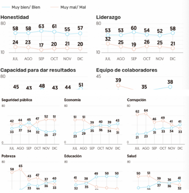 La imagen de liderazgo de AMLO también sufrió una mejora, pues pasó de 52% a 58%.