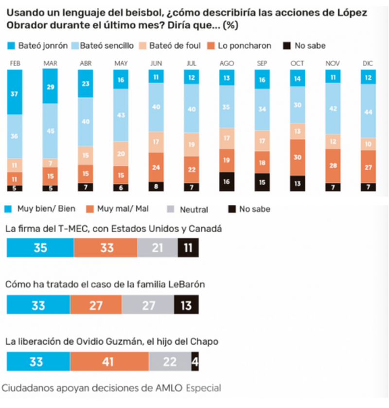 Según la encuesta realizada por Alejandro Moreno para El Universal, la aprobación que los mexicanos le dan al Presidente de México, Andrés Manuel López Obrador, subió en diciembre de 2019 cuatro puntos porcentuales.