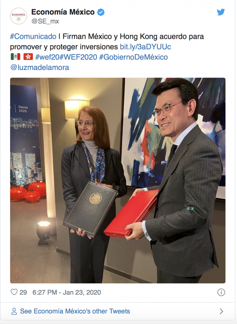 Durante el Foro Económico Mundial de Davos 2020, llevado acabo en Suiza, nace un nuevo acuerdo que acerca a México con uno de los centros financieros más importantes del mundo, Hong Kong.