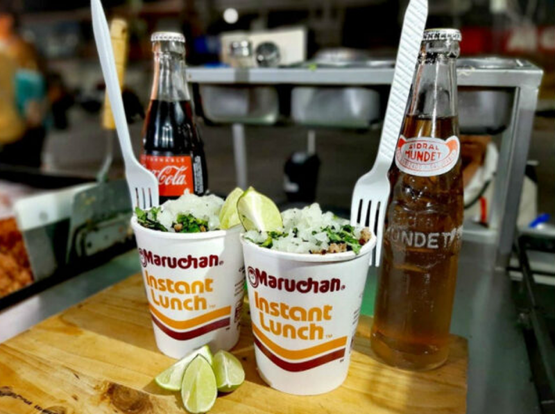 Callejera”, hecha con “Maruchan” y complementada con suadero, cilantro,