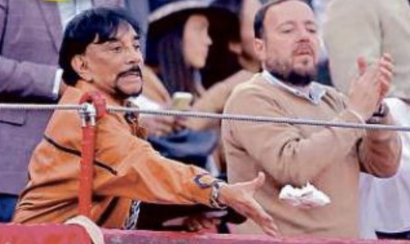 Una foto publicada por el diario de circulación nacional muestra al líder sindical en primera fila frente al torero, levantando la mano derecha.