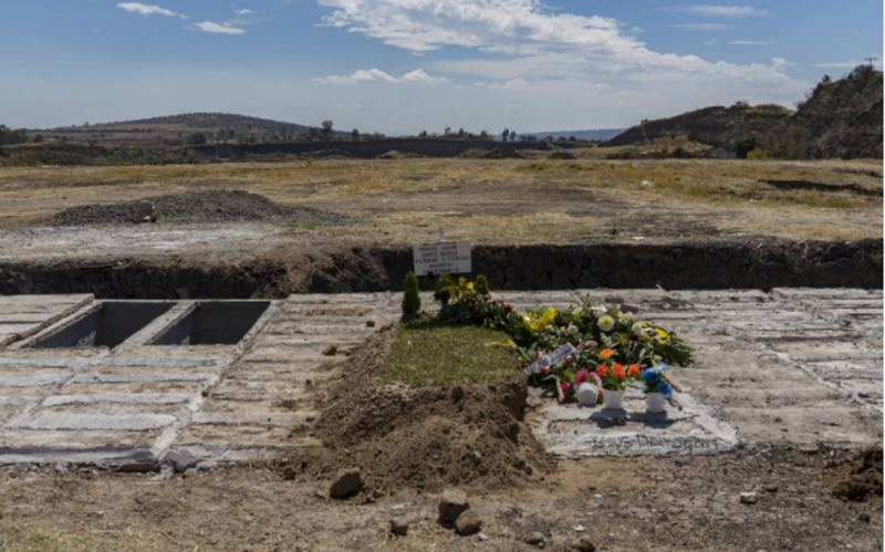 Una carroza fúnebre blanca con detalles brillantes sube las cuestas de un cementerio que rebasó desde hace tres años su capacidad. Los nuevos muertos se entierran más allá de los límites previstos del recinto y quedan en un descampado listo también para los que vengan. Los familiares y amigos de El Cala suben gritando: "Nos vengaremos".