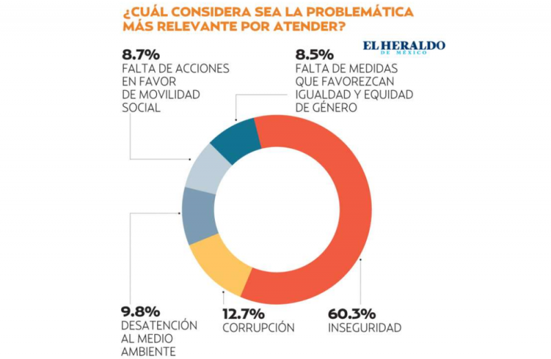 En contraste, la inseguridad es la problemática más relevante de la administración Sheinbaum, con 60.3 por ciento; le sigue la corrupción (12.7 por ciento) y la desatención al medio ambiente (9.8 por ciento).