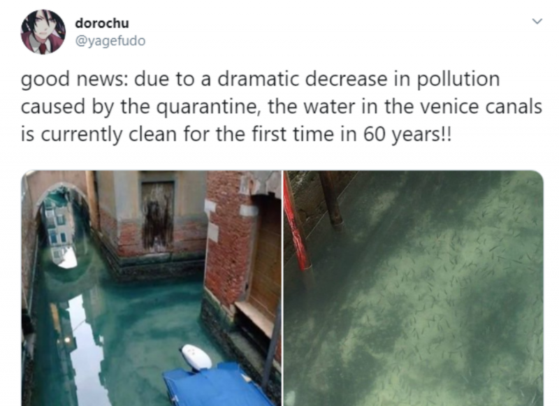 Buenas noticias: la baja en la contaminación debido a la cuarentena ha logrado que los canales se vean limpios por primera vez en 60 años”, escribió un usuario de Twitter.