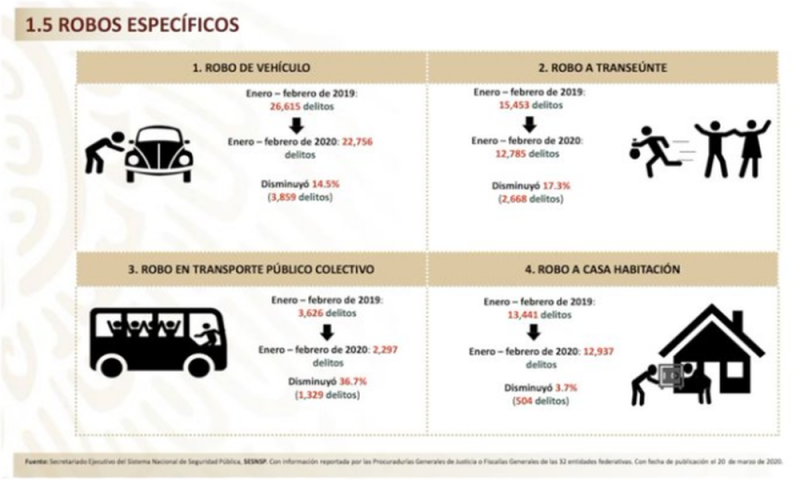 Respecto a robos específicos, las cifras han disminuido comparando enero-febrero de 2019 con enero y febrero de 2020: