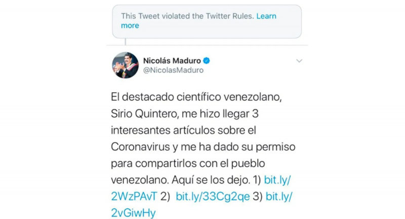 Aunque Maduro no dio detalles de la supuesta cura, el tuit anunció cómo el “célebre científico venezolano”, Sirio Quintero, le había enviado tres artículos sobre posibles remedios para el coronavirus y amablemente le dio permiso para compartirlos con el público.