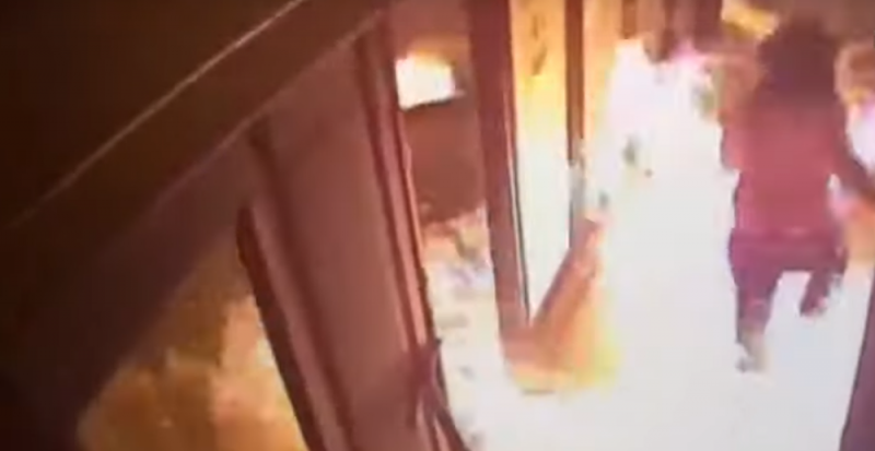Una cámara de seguridad captó el momento exacto en que el sujeto se agachó y las llamas lo alcanzaron. En las escenas se alcanza ver cómo el hombre trata de escapar, pero el fuego continuó lastimando su cuerpo.