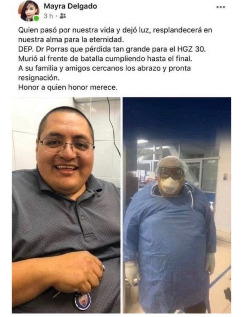 No quiso dejar de trabajar. Al doctor José Porras, más conocido como Pepe, sus compañeros del Hospital General Zona 30 del IMSS en la alcaldía Iztacalco, en México, le pedían que se quedara en casa ante el avance del coronavirus o que al menos pidiera el cambio para otra zona que no fuera el área de urgencias, donde llegan pacientes sospechosos de portar el virus. No hizo caso.