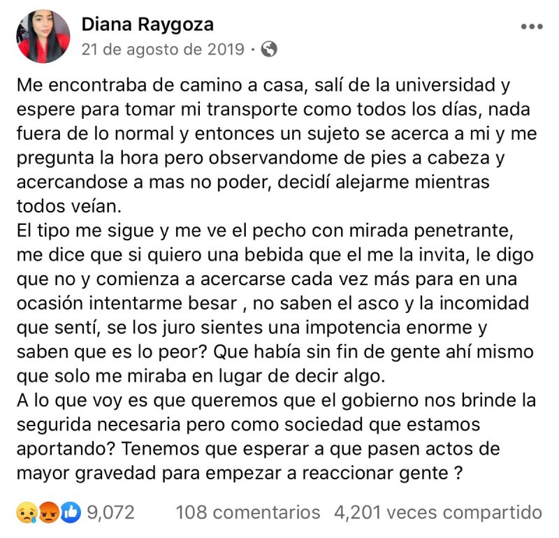 Diana denunció y relató el hecho en Facebook, mismo que se viralizó en todo el país: