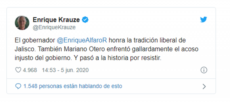 Enrique Krauze dijo a través de sus redes sociales que “El gobernador, Enrique