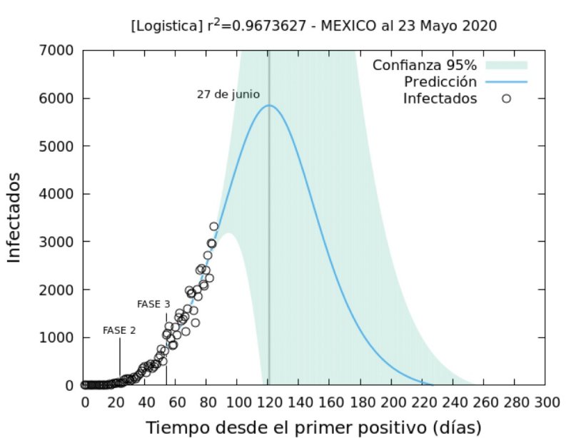 El pico de la pandemia Covid-19 en México se había planteado, en un inicio (es decir, a mediados de abril) entre la segunda y tercera semana de mayo; sin embargo, en un estudio reciente de la UNAM, se advierte que la fecha del pico se ha recorrido un mes, aproximadamente, en parte por el poco cumplimiento del confinamiento que se ha dado en mayo.