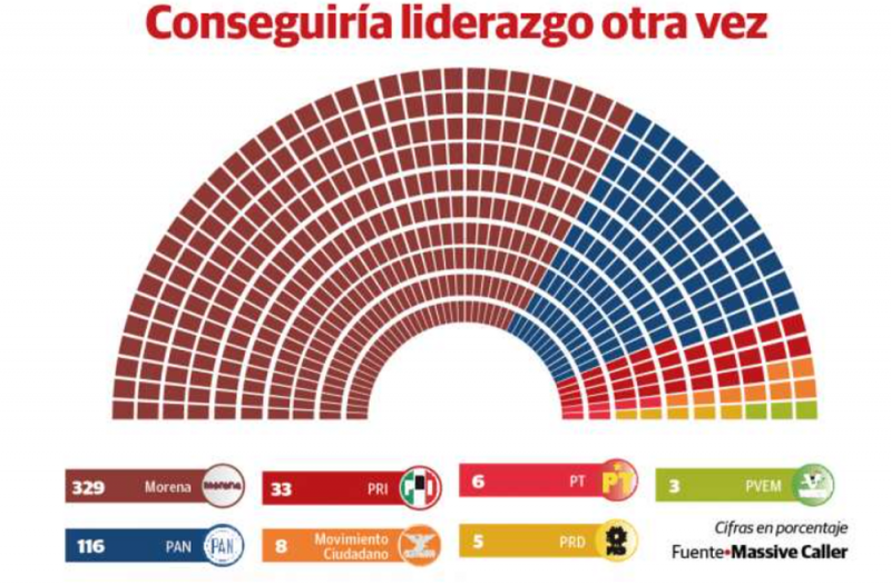 De tal forma prevé que de continuar estas estimaciones en la elecciones del 2021, Morena volvería a ser mayoría en la Cámara de Diputados, por lo que el presidente Andrés Manuel López Obrador conservaría el respaldo mayoritario en el congreso.