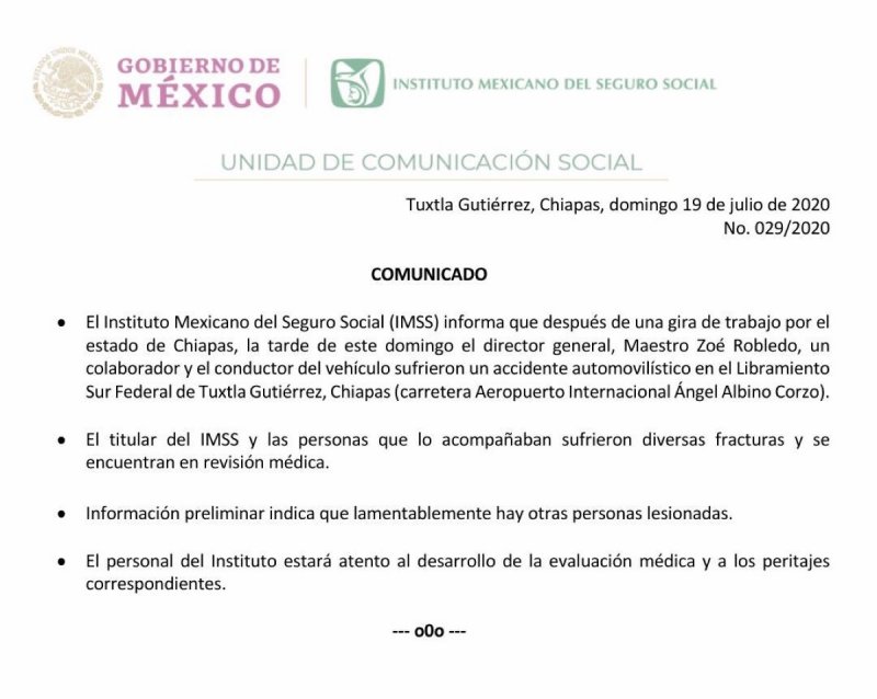 El IMSS señaló que tanto Zoé y las personas que lo acompañaban sufrieron diversas fracturas y se encuentran en revisión médica.