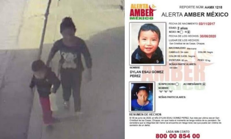 A Dylan Esaú fue sustraído por una mujer adulta con la ayuda de dos menores de edad. De acuerdo con las cámaras de vigilancia de la zona del Mercado Popular del Sur de San Cristóbal de las Casas, se observa en varias ocasiones una fémina con blusa de rallas negras y blancas y de quien se presume participó de manera directa en los hechos.