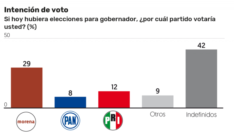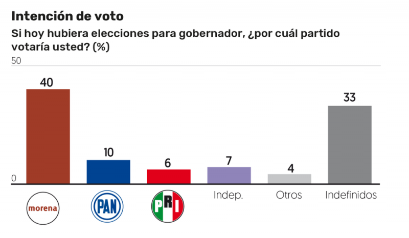 De acuerdo con esa encuesta, el PAN obtendría el 30 por ciento, seguido por Morena con 22 por ciento.