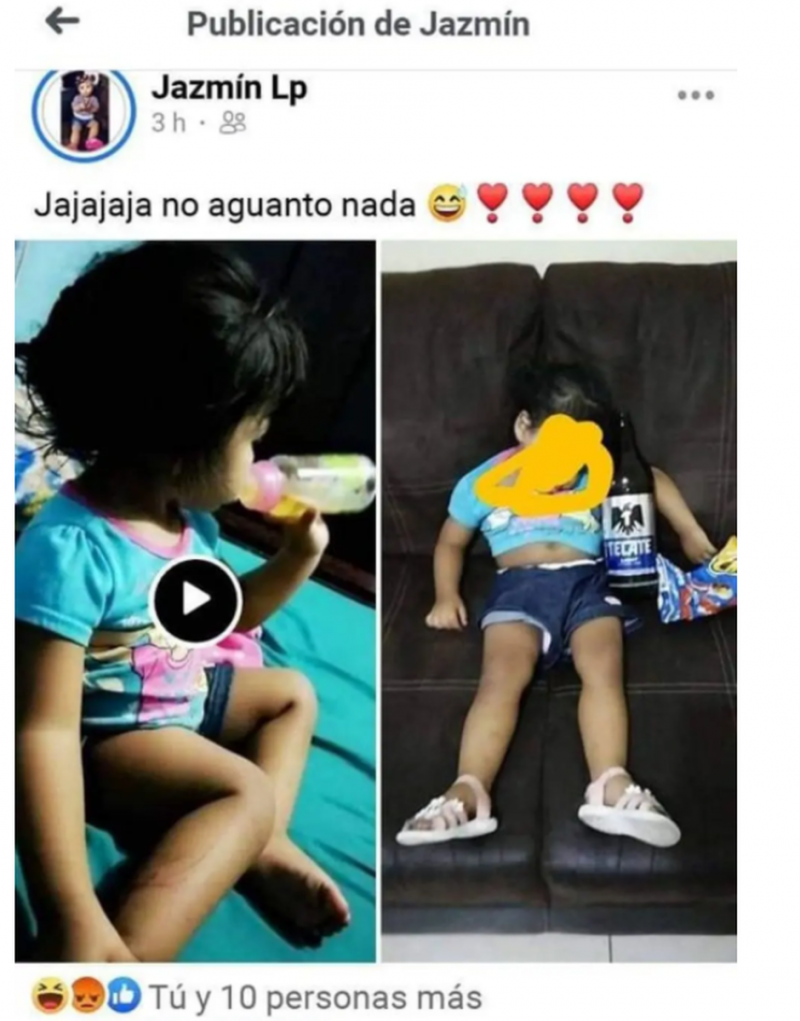ganaría “likes” burlarse de su propia hija al grabarla con un bibi de cerveza y