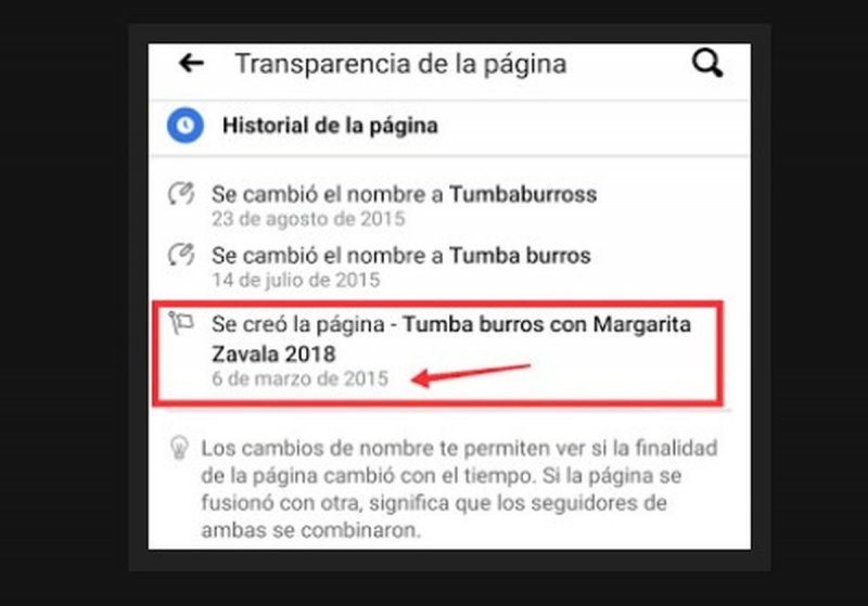 1. Tumbaburross crea página de facebook en 2015 apoyando a Margarita Zavala; sí, estimado lector, más claro ni el agua. Entras a la página de susodicho, úbica la sección de "transparencia de página", da click en "ver todo", luego vas a "historia de la página" y sorpresa... "Tumba burros con Margarita Zavala 2018".