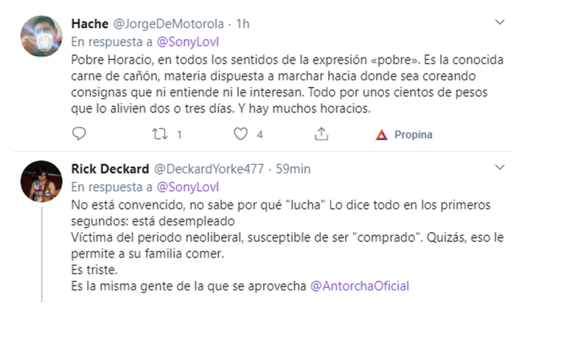 La gente ha lamentado que la derecha trate de manipular a gente necesitada para que nutran artificialmente su movimiento y acampen solo por una pequeña cantidad de dinero para subsistir, señalando que Horacio y cientos más, son víctimas del neoliberalismo.