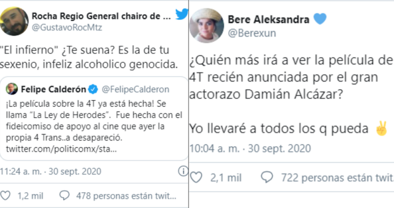 Luego de las revelaciones del actor que se ha declarado a favor del gobierno del presidente Andrés Manuel López Obrador, el expresidente Felipe Calderón le respondió twitter y afirmó que la película de la 4T ya existe y se llama: La Ley de Herodes, protagonizada por el propio Damián Alcázar.