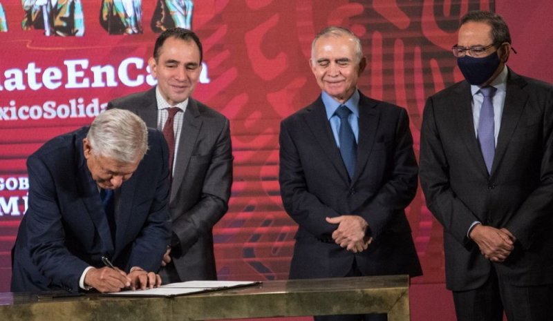 “Vamos a suscribir un convenio con el sector privado nacional que va a significar empleos, inversión, bienestar. Por eso celebro que estén aquí los representantes de los empresarios de México, a quienes les agradecemos mucho, a ellos y a todos los empresarios del país, pequeños, medianos, grandes”.