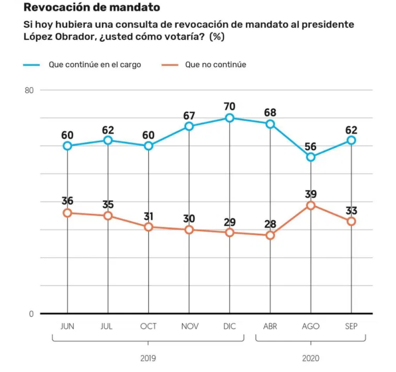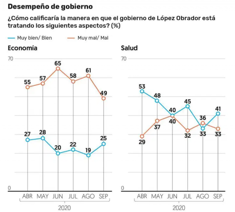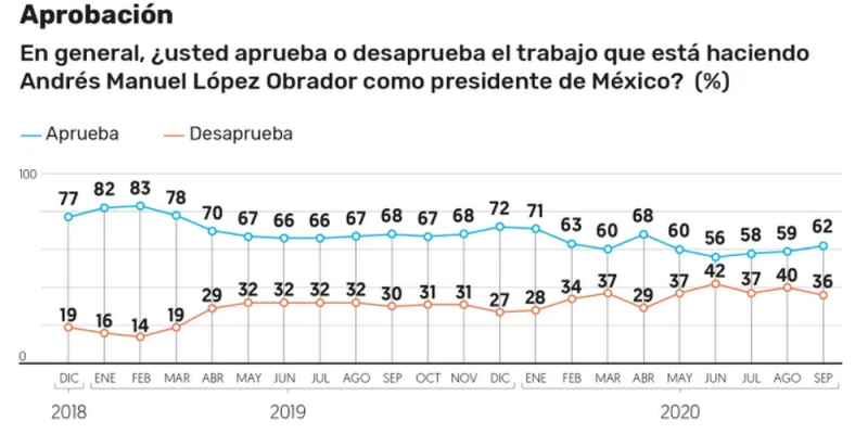 Durante el mes de agosto, el Presidente tenía una aprobación del 59% y en septiembre aumentó a 62%; sin embargo, aún se encuentra por debajo de lo alcanzado en abril, cuando registró un 68%.
