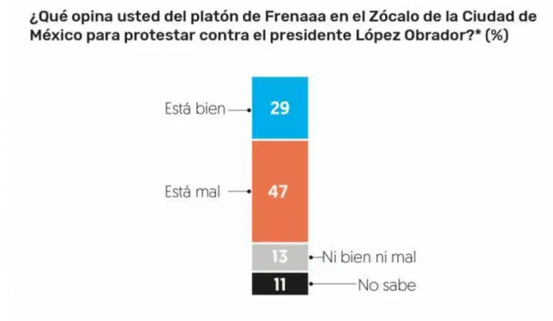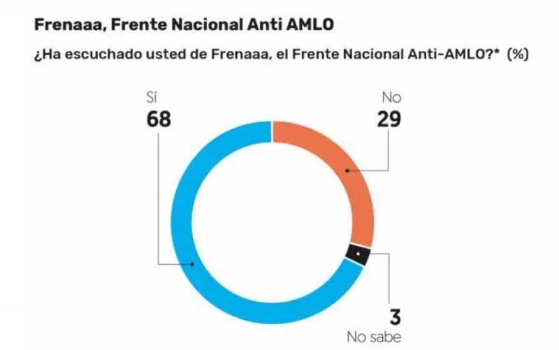En cuanto al tema del Frente Nacional AntiAMLO el 68% dijo haber escuchado hablar sobre ello. El 29% expresó una opinión favorable respecto al plantón en el Zócalo y el 47% dijo estar en contra.