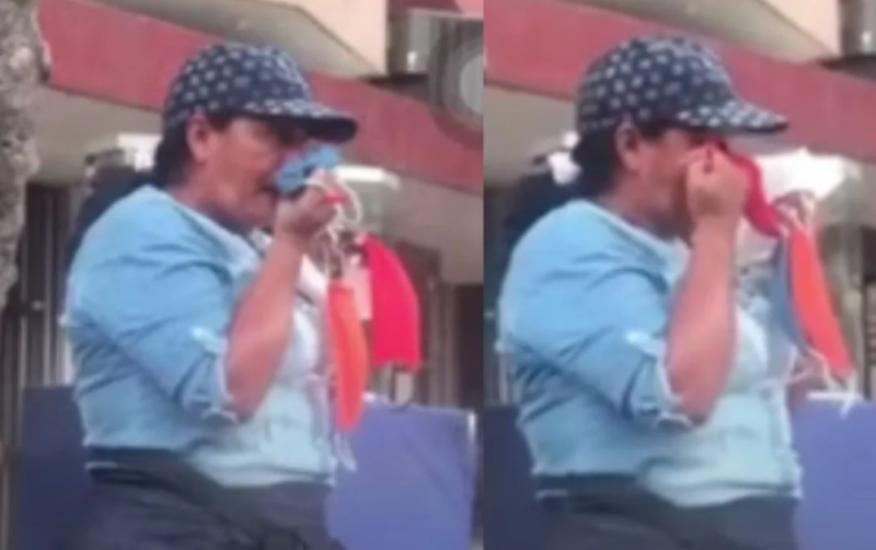 Sorprenden a mujer limpiándose la nariz con CUBREBOCAS que vendía en la calle