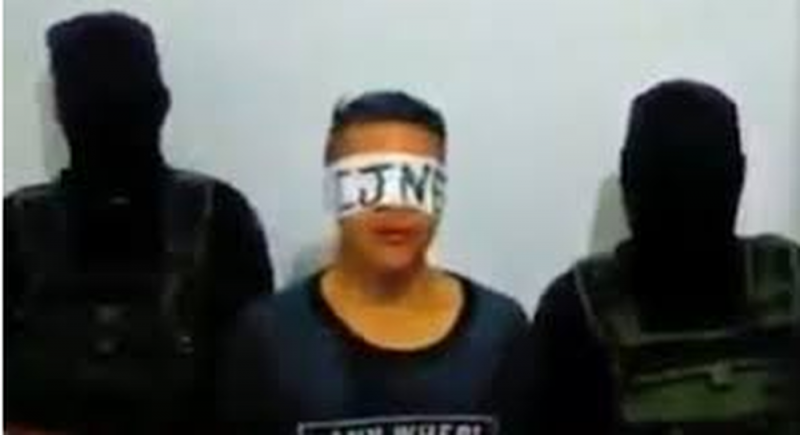En el video se aprecia a un hombre atado y con una venda en los ojos con las siglas del CJNG, que dice ser miembro del Cártel Santa Rosa de Lima.