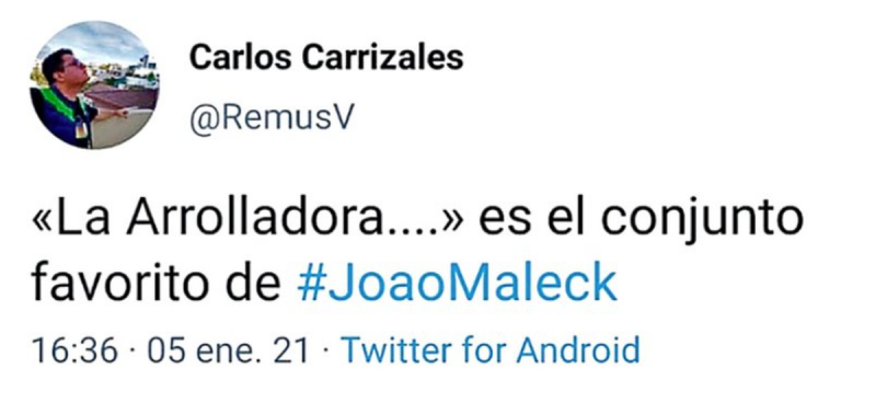 conjunto favorito de #JoaoMaleck”, escribió el funcionario desde su cuenta