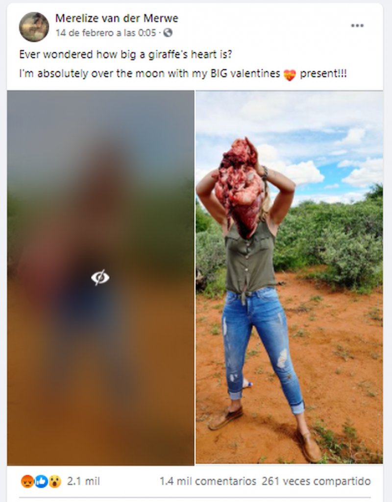 con el corazón de la jirafa que mató, Merelize van der Merwe, contó en Facebook