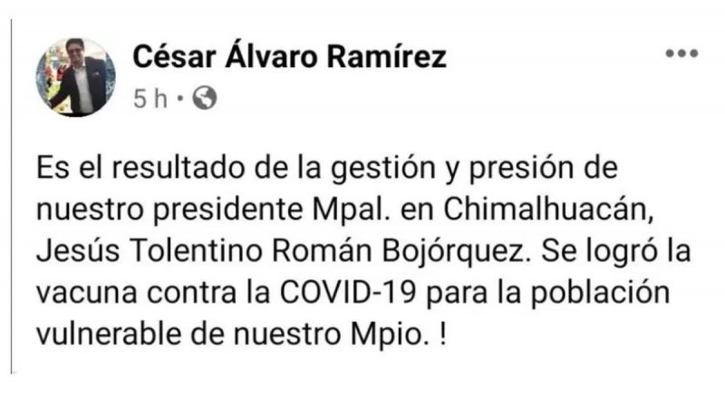 municipal sobre las sedes de la vacunación, Jesús Tolentino aprovechó la oportunidad para difundir su