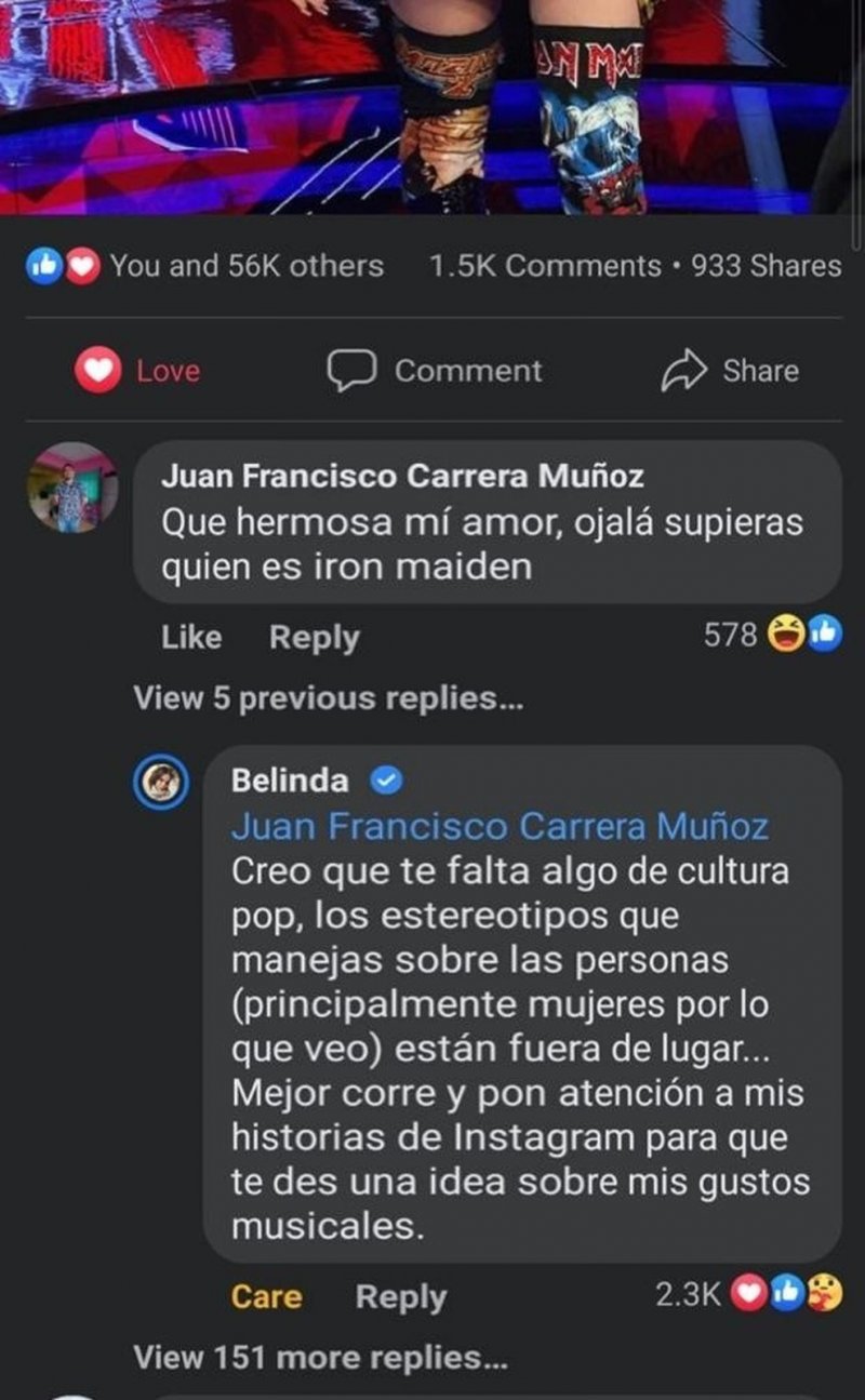 eliminó su comentario, pero los seguidores de Belinda lograron obtener una captura