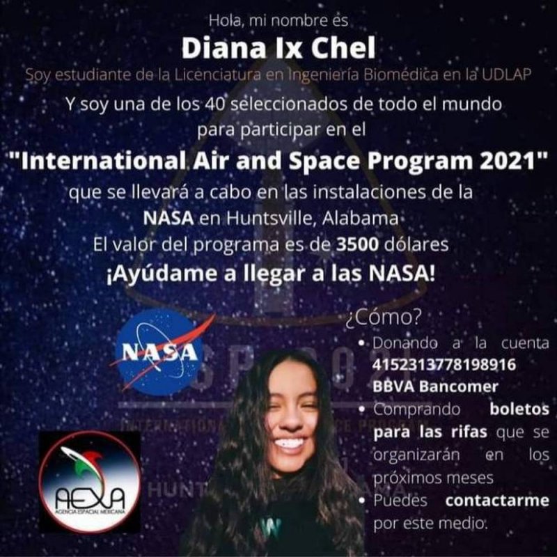 Si deseas apoyar a Diana para cumplir su sueño de llegar a la NASA puedes apoyarla a través de diversas maneras.