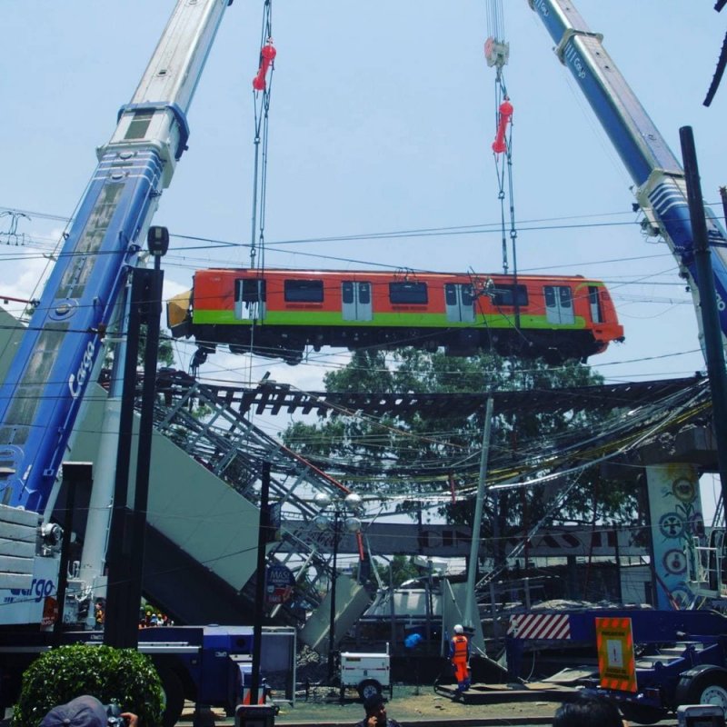 Retiran vagones de Línea 12 colapsada con grúas especializadas