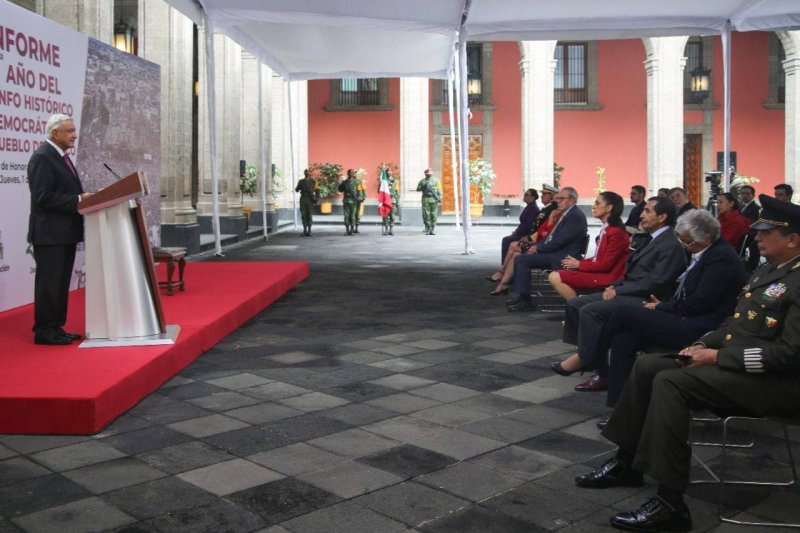Durante su discurso emitido desde Palacio Nacional, mencionó que en estos tres años de Gobierno no se ha contratado deuda adicional y que el peso no ha sufrido devaluaciones, mientras que el salario mínimo aumentó en un 44% en términos reales “como no se veía desde hace 36 años”.