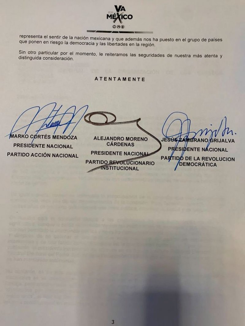 A través de sus redes sociales, el líder nacional del PRI, Alejandro Moreno, Alito, aseguró desde la sede de la OEA en Washington, D.C., que “no permitiremos que la democracia mexicana se ponga en riesgo”.