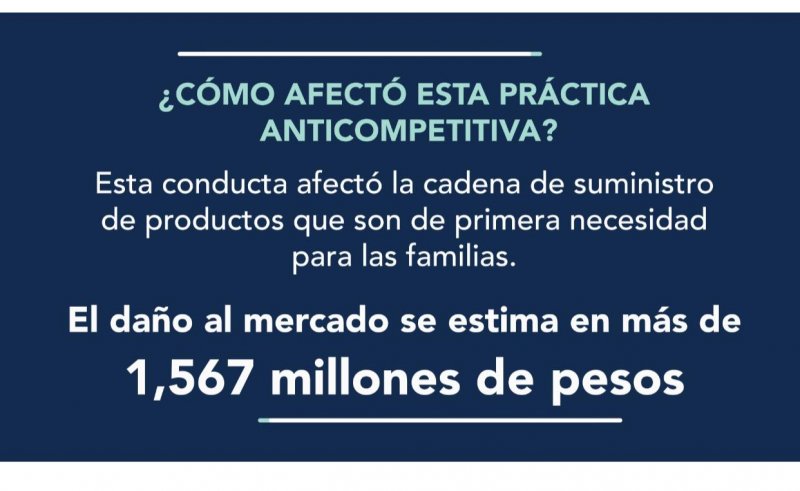 La comisión estimó que estas prácticas monopólicas provocaron un daño aproximado de mil 567 millones 36 mil 589.