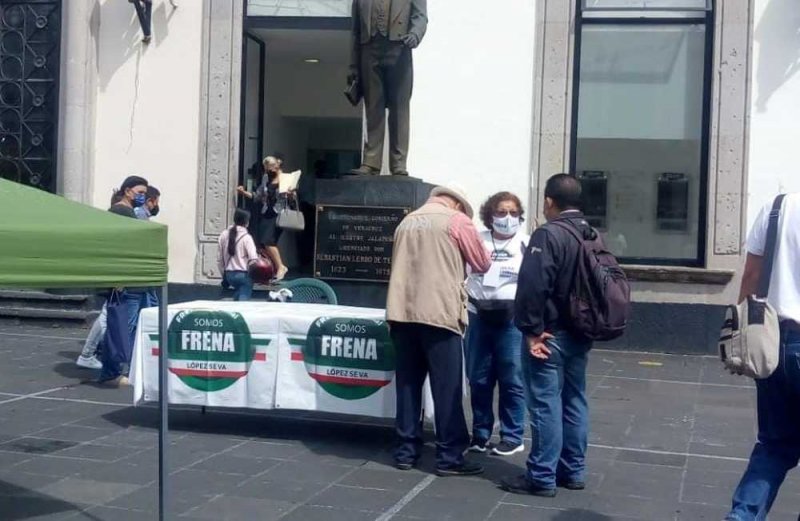 En la plaza Sebastián Lerdo de Tejada se han instalado mesas para informar y recabar firmas “estuvimos en el Parque Revolución unos días y la semana pasada ya estuvimos aquí. El sábado y domingo también vamos a estar aquí de 11:00 a 14:00 horas y la semana próxima muy probablemente regresemos acá, aunque pensamos rotarnos por las principales zonas de la ciudad y la zona conurbada de Coatepec y Banderilla”.