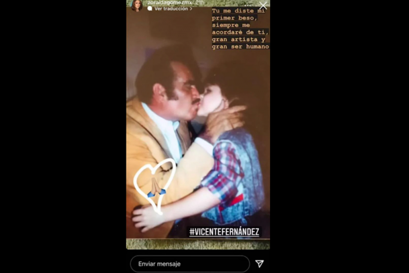 Tras la muerte de Vicente Fernández una gran cantidad de artistas y figuras públicas han exteriorizado su pesar, entre estas personas la actriz Zoraida Gómez publicó una foto junto al Charro de Huentitán donde indicaba que el interprete había sido su primer beso.
