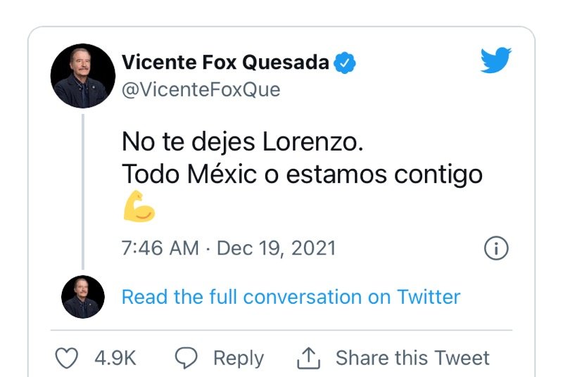 “No te dejes Lorenzo, todo México esta contigo”, arremete Fox contra AMLO